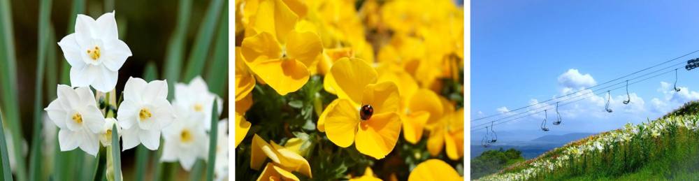 在春天的時間,季節花卉能觀賞2萬株三色堇及水仙花