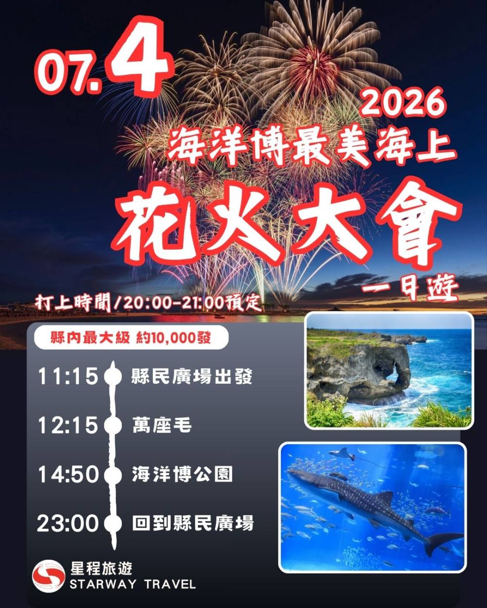 沖繩花火祭典一天團【萬座毛◎海洋博公園◎】KOH-01