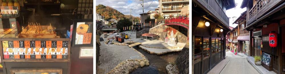 歷史悠久溫泉區,與草津溫泉、下呂溫泉並列為「日本三大名泉」,漫步於風情萬千的溫泉街上,品嚐各式各樣的知名美食,也是有馬溫泉的一大魅力。