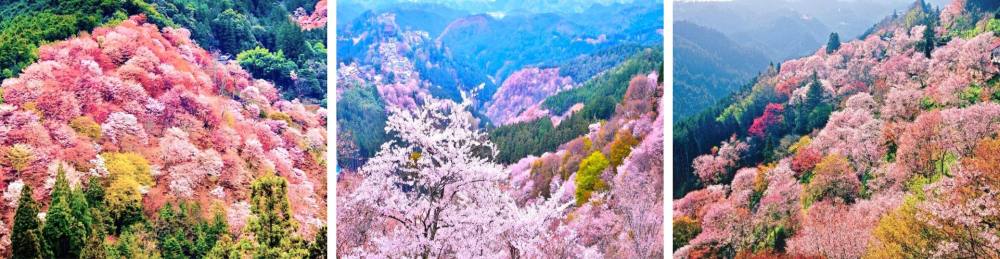 吉野山的櫻花十分有名,因此春天是遊覽吉野山的最好時節之一。這座山峰的上千本、中千本、下千本和奧千本的歷史可以追溯至 1714 年,每個區塊據說都有超過 1,000 棵櫻花樹。