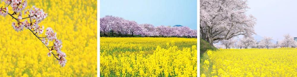 藤原宮跡的櫻花與油菜花海一同構成美麗的景致,是個相較於其他景點人潮較少,可以悠閒賞花的秘境。 該處是日本首個京城「藤原京」的皇宮遺址,不僅有櫻花,還有油菜花田、古跡和湖泊,景觀豐富而唯美。
