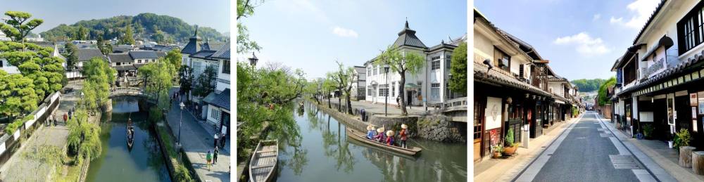 一個歷史街區重溫日本的昔日榮光、筆直的河道、白色塗料和石瓦,倉敷美觀地區的街道呈現出傳統的日本韻味。