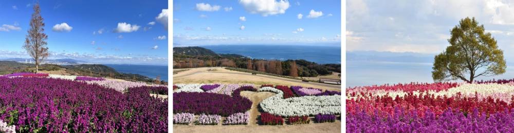 欣賞明石海峽和大阪灣壯麗的風光,以及由各色花畑編織的一幅幅五彩繽紛的鮮花地毯